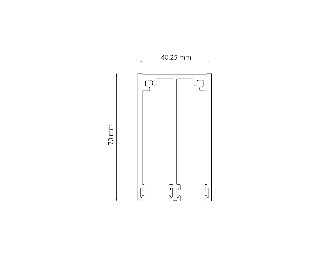 Deze 2-rail glazen schuifwand is geschikt voor een inbouwmaat tot 1950 mm breed. Kies uit de 13 verschillende hoogtes en eventueel extra opties.