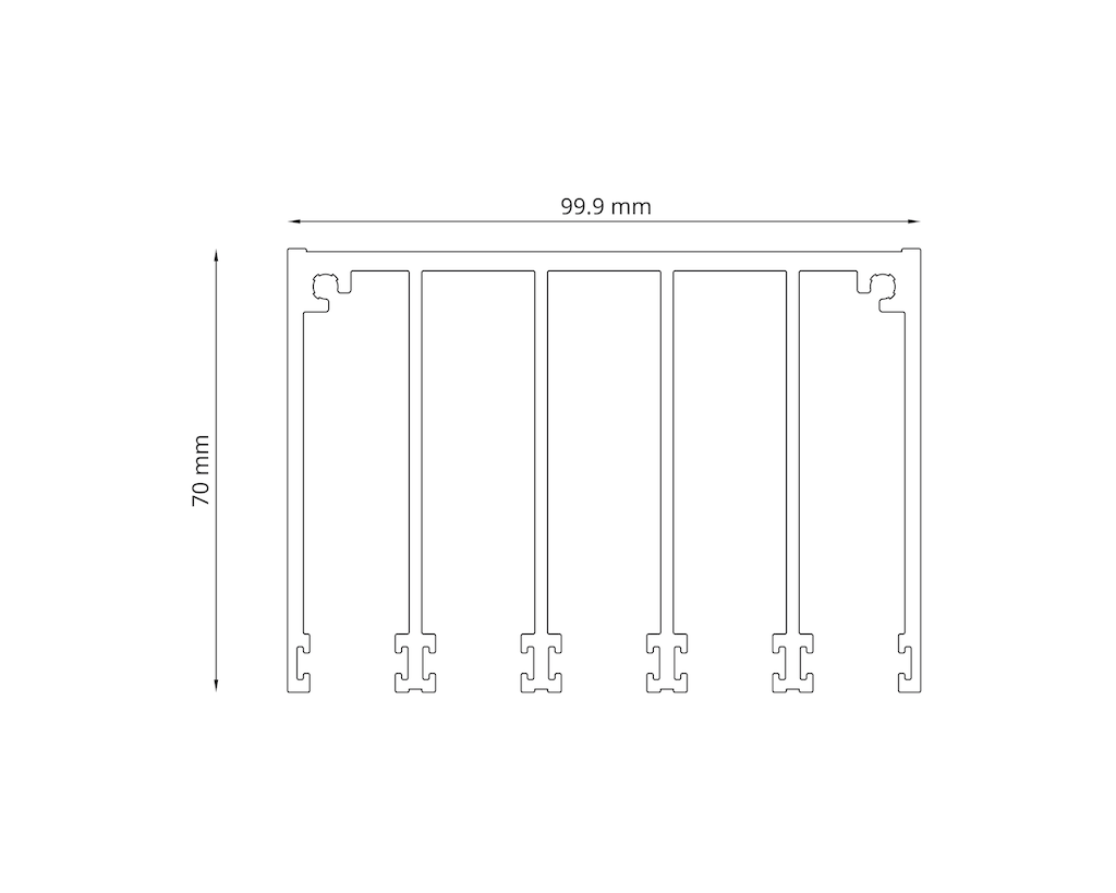 Deze 5-rail glazen schuifwand is geschikt voor een inbouwmaat tot 5110 mm breed. Kies uit de 13 verschillende hoogtes en eventueel extra opties.